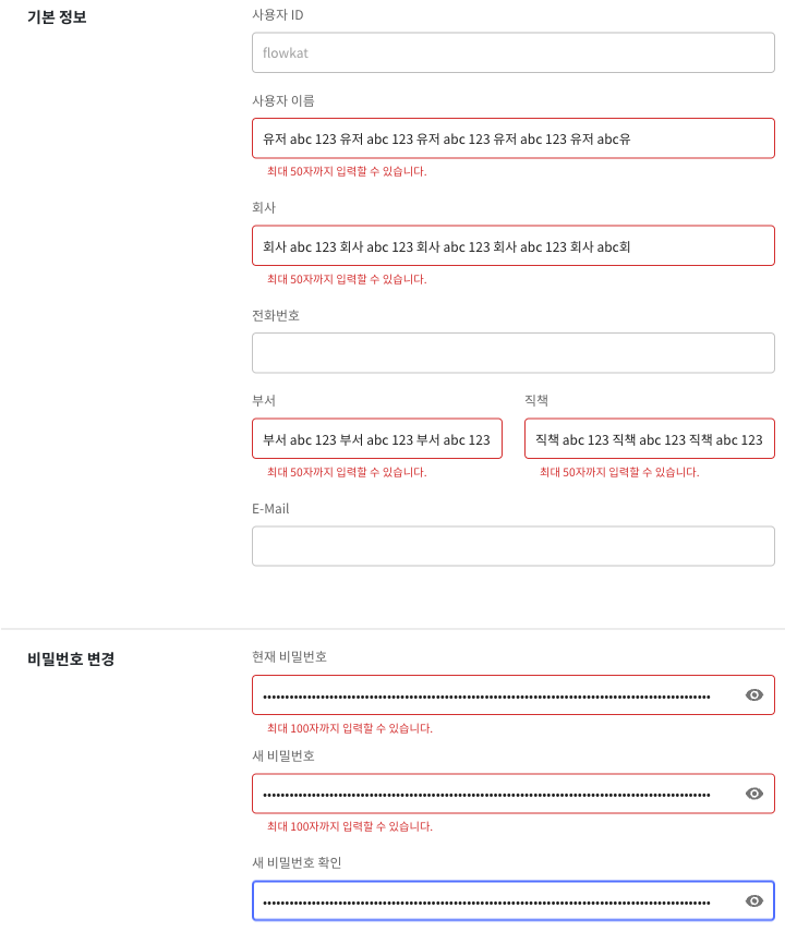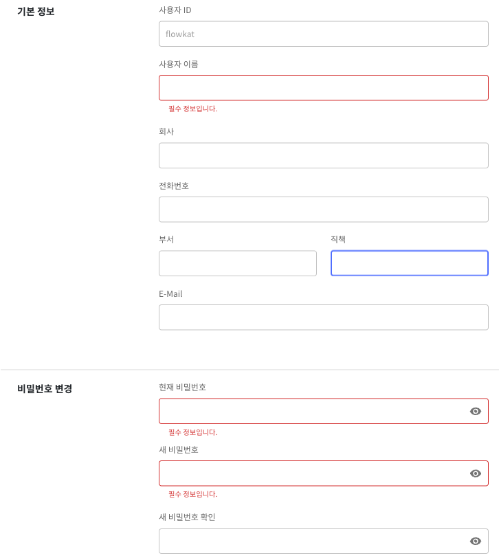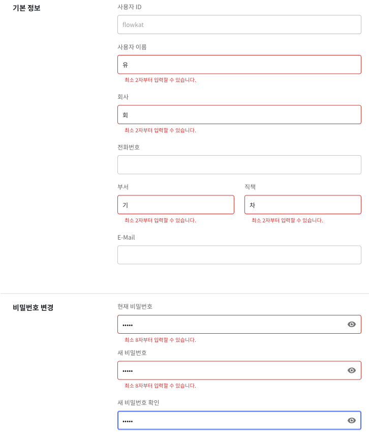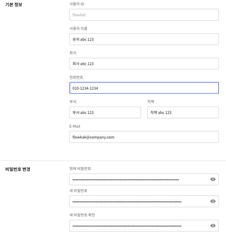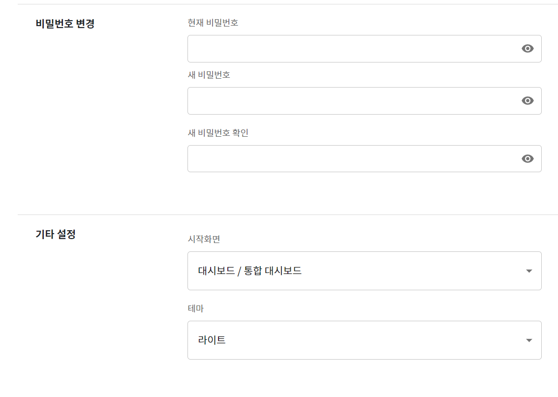 로그인한 사용자 계정의 정보를 변경할 수 있습니다.