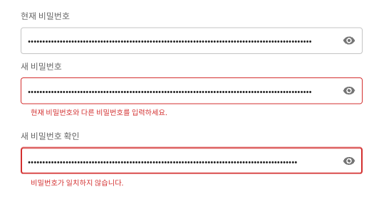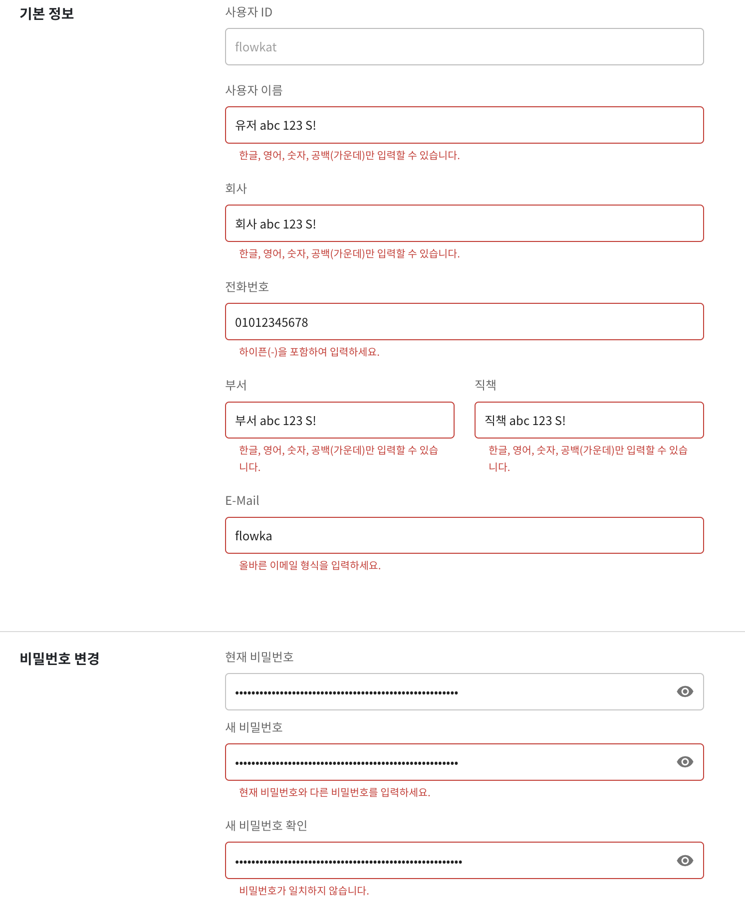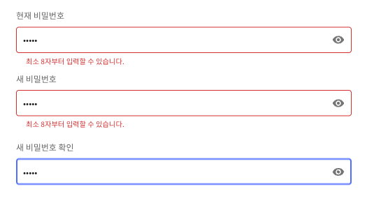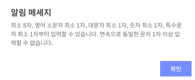 비밀번호 정책에 맞지 않은 패스워드 입력