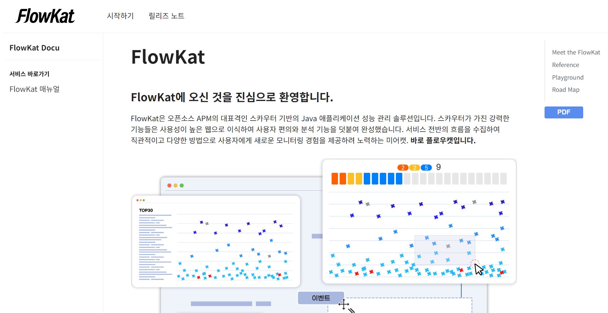 • 플로우캣 주요 메뉴가 배치되어 있습니다.