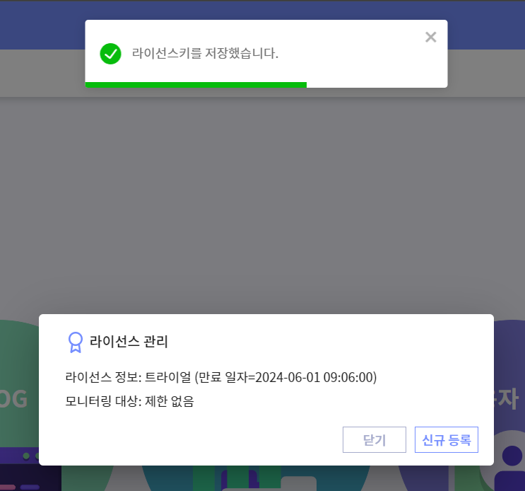 관리자 권한을 가진 사용자는 라이선스 정보를 관리할 수 있습니다.