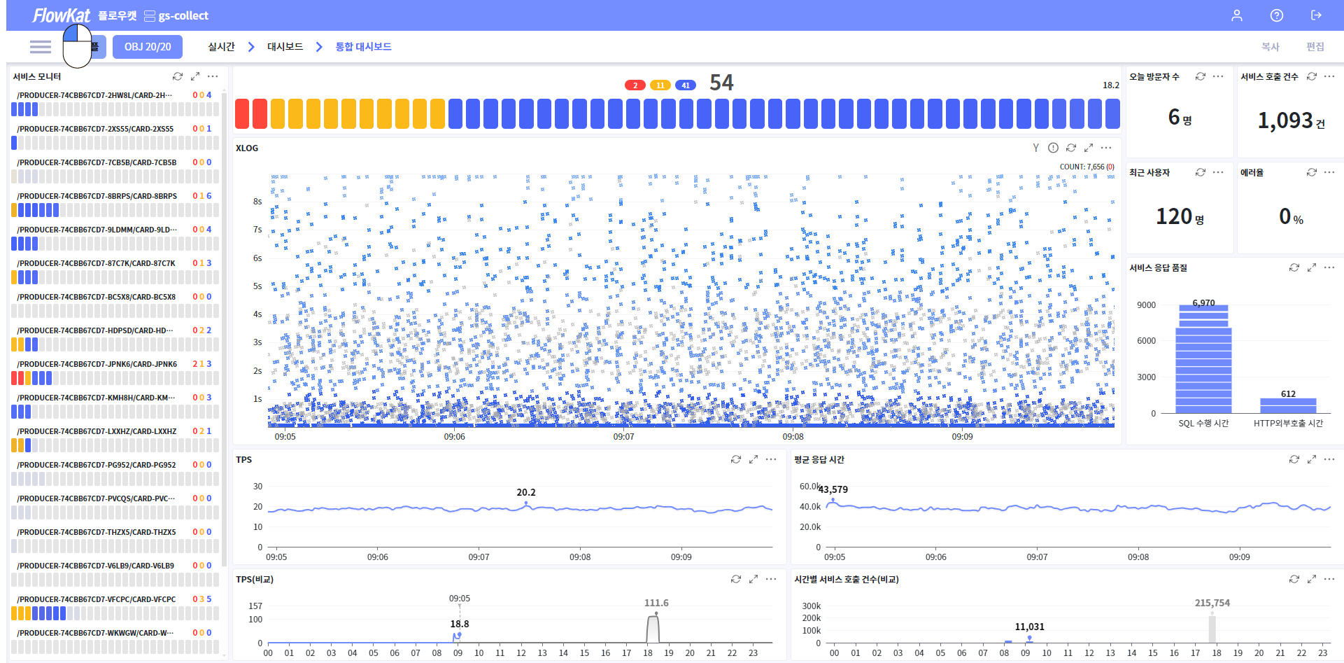 FlowKat?주요 메뉴플로우캣 홈FlowKat?>주요 메뉴>플로우캣 홈이 페이지에서플로우캣 홈 바로가기 형태의 주요 메뉴를 제공합니다. 홈으로 이동 방법 홈 메뉴 or 로고 클릭 홈 화면 주요 메뉴 바로가기 대시보드: 대시보드 목록으로 이동 XLOG: XLOG 분석 페이지로 이동 트랜잭션 통계: 트랜잭션 통계 페이지로 이동 사용자 관리: 사용자 관리 페이지로 이동 플로우캣 API 서버: 플로우캣 API 서버 목록으로 이동